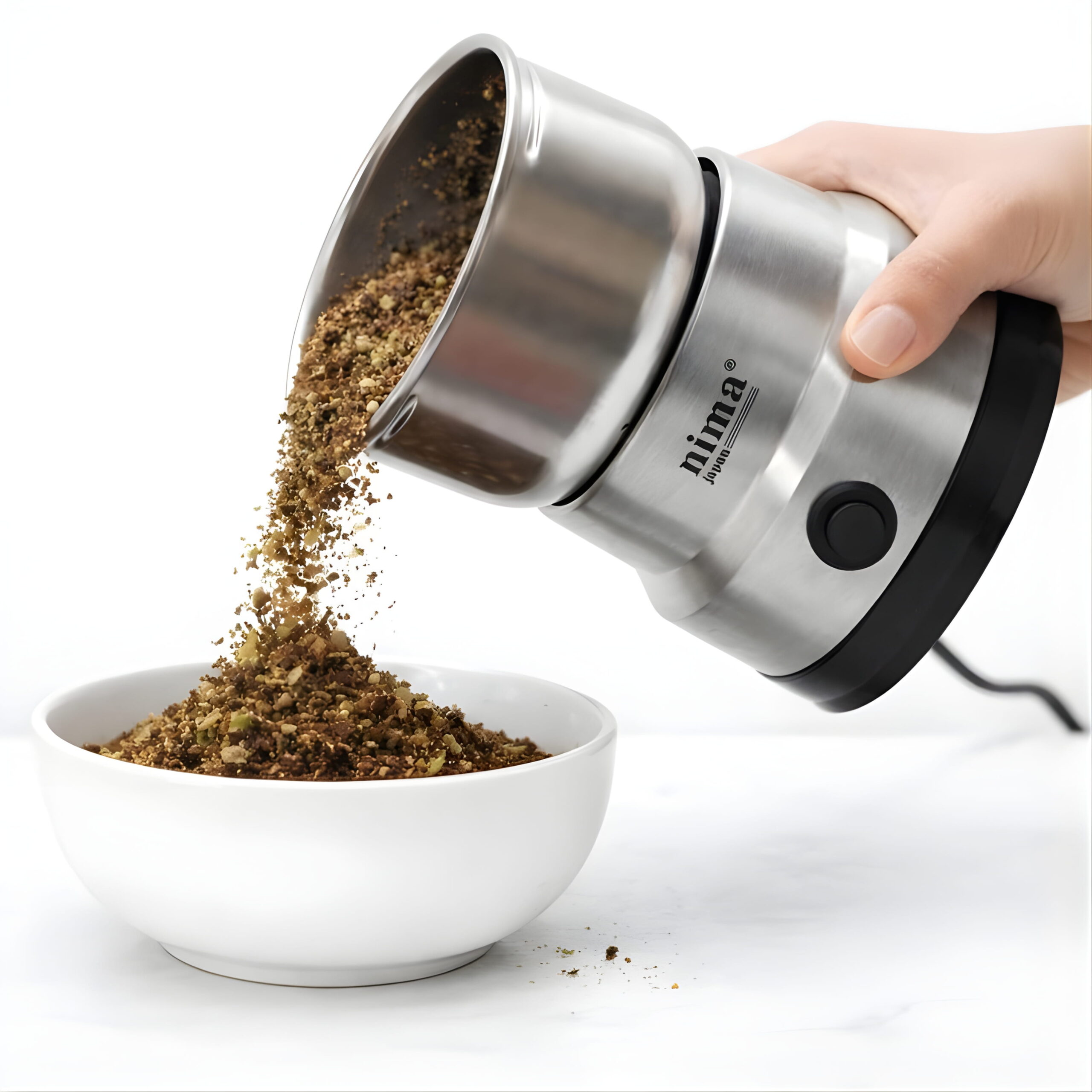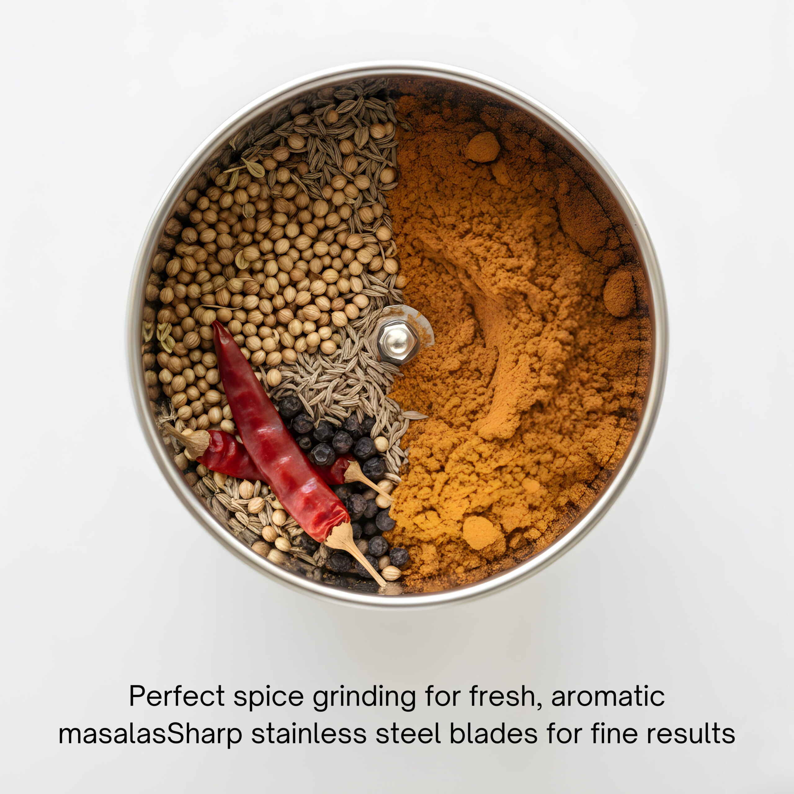 Built with a high-speed motor and sharp stainless-steel blades, it ensures fine and even grinding within seconds. Its compact size makes it ideal for modern kitchens, small spaces, and daily use, while the durable design guarantees long-lasting performance.